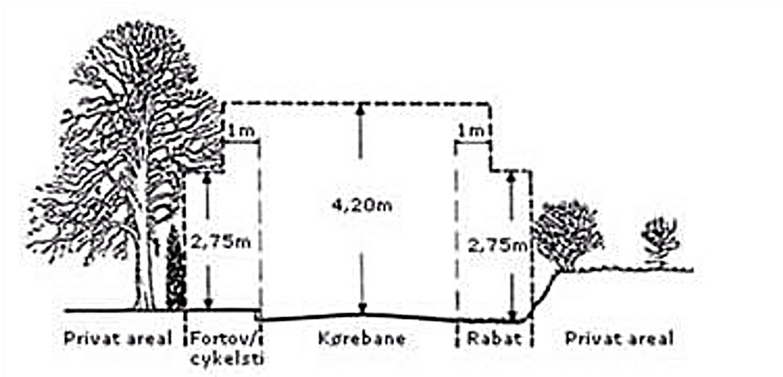 Poseregårdens grundejerforening Princip for beskær af beplantning mod Poserevænget og Poserekrogen Ovenstående skitse viser "normtal" til friholdelse af kørebanen. Det er den enkelte grundejers opgave at beskære beplantningen langs vejene. I henhold til lokalplan 3 er vejudlægget følgende: - Poserevænget 10 meter - Poserekrogen 8 meter Dette giver følgende frirum ved rabat 1,5 m + 1,5 m Poserevænget frirum 7 m x 4,2 m i højden Poserekrogen frirum 5 m x 4,2 m i højden.